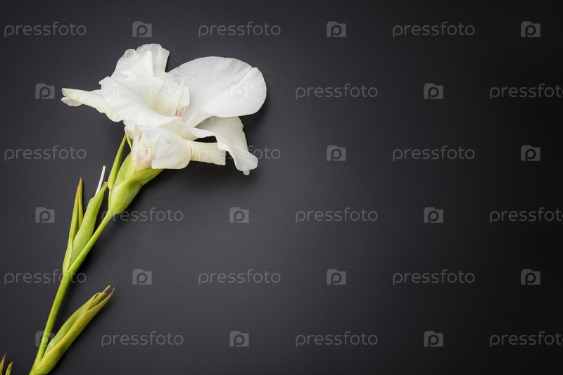 Белый гладиолус на черном фоне. Красивый цветок. Выборочный фокус. Место для вашего текста