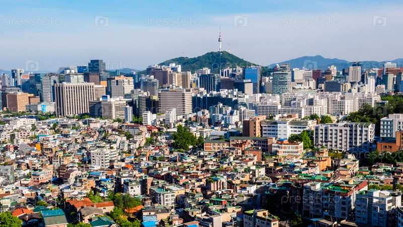 Вид на горы Намсан, городской пейзаж Сеула, Южная Корея