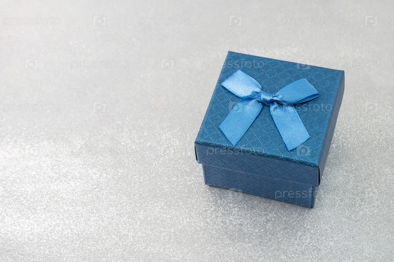 Синяя подарочная коробка с бантом на блестящем фоне