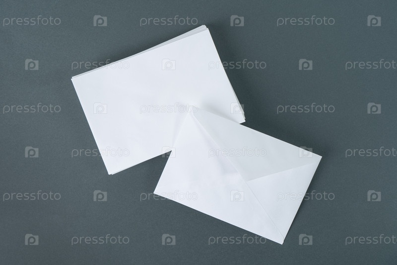 Пустые конверты на сером фоне. Вид сзади и спереди. Шаблон для дизайнерских презентаций и портфолио