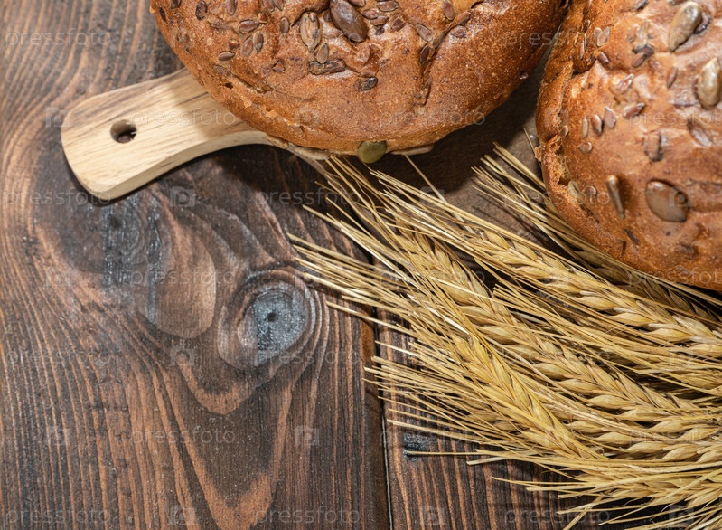 Свежий хлеб и пшеница на деревянном столе
