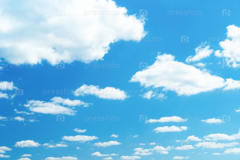 Белые облака на голубом небе. Летнее небо. Красивый ярко-синий фон. Кудрявые облака в солнечный день