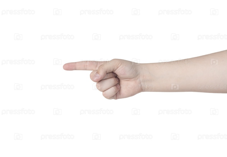Человеческая рука, указывающая пальцем на белом фоне