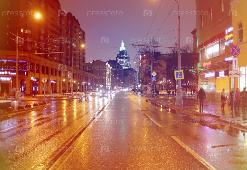 Красивое фото вечерней Москвы по улице едут машины и идут люди