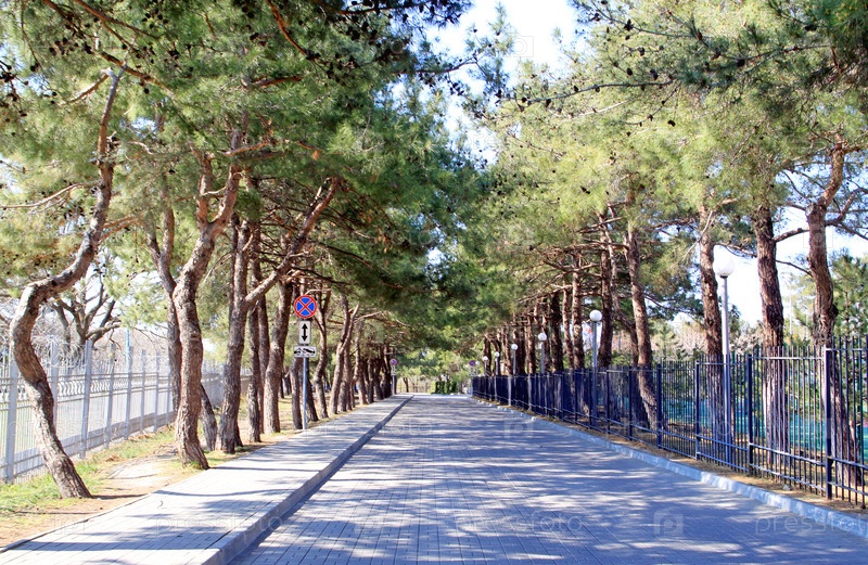 Красивое фото аллеи с сфотографированным можжевеловым деревом