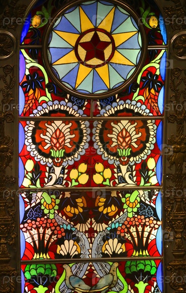 Красивая стеклянная разноцветная мозаика, сфотографированная крупным планом в московском метро