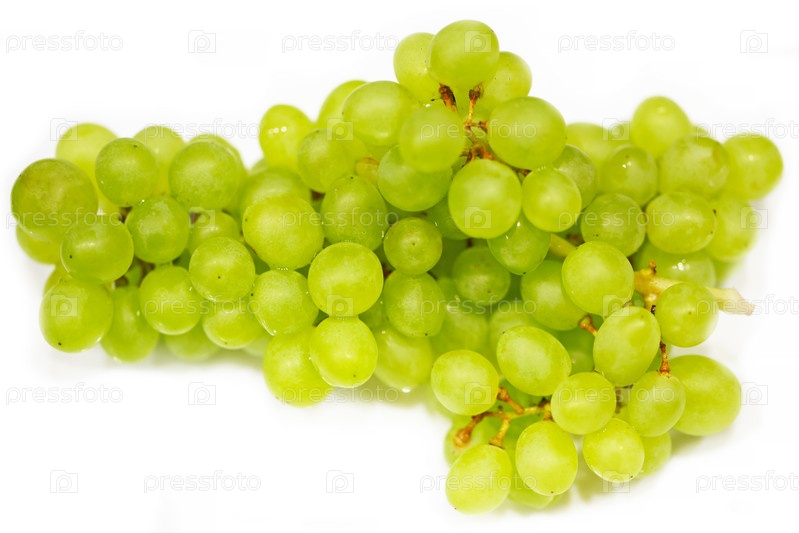 Красивое фото белого винограда крупным планом на белом фоне