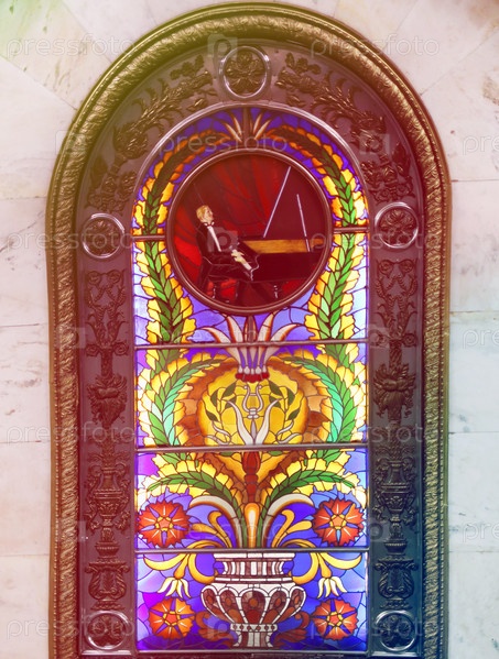 Красивая стеклянная разноцветная мозаика, сфотографированная крупным планом в московском метро