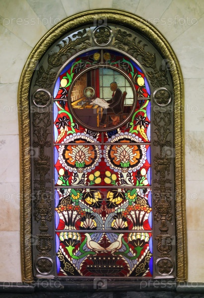 Красивая стеклянная разноцветная мозаика, сфотографированная крупным планом в московском метро