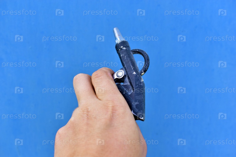 Пистолет для покраски поверхностей краскопульт на голубом фоне