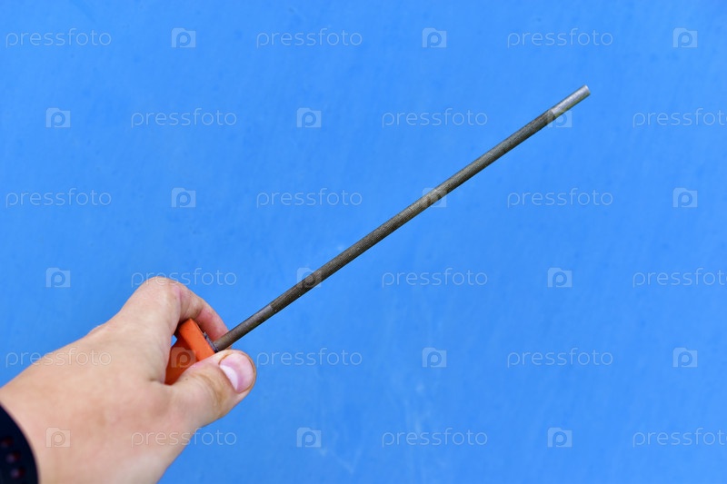 Точилка в руке на синем фоне