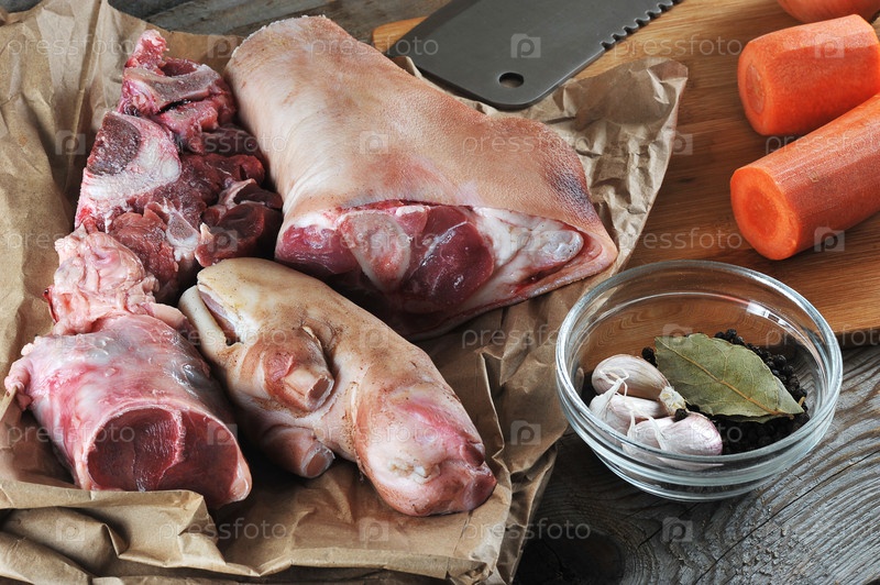 Набор для приготовления холодца - свиные ножки, свиная рулька, морковь, лук, специи