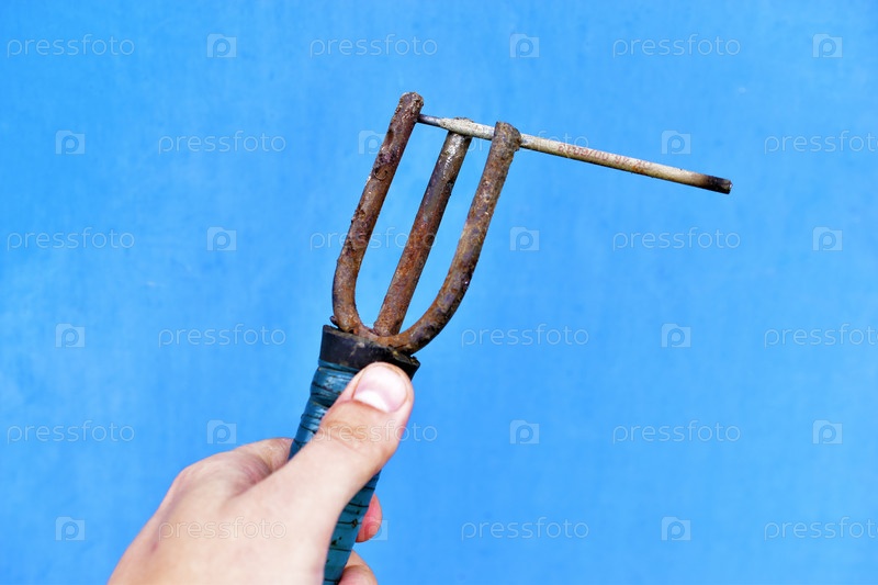 Держатель ручки сварочного аппарата в руке на синем фоне