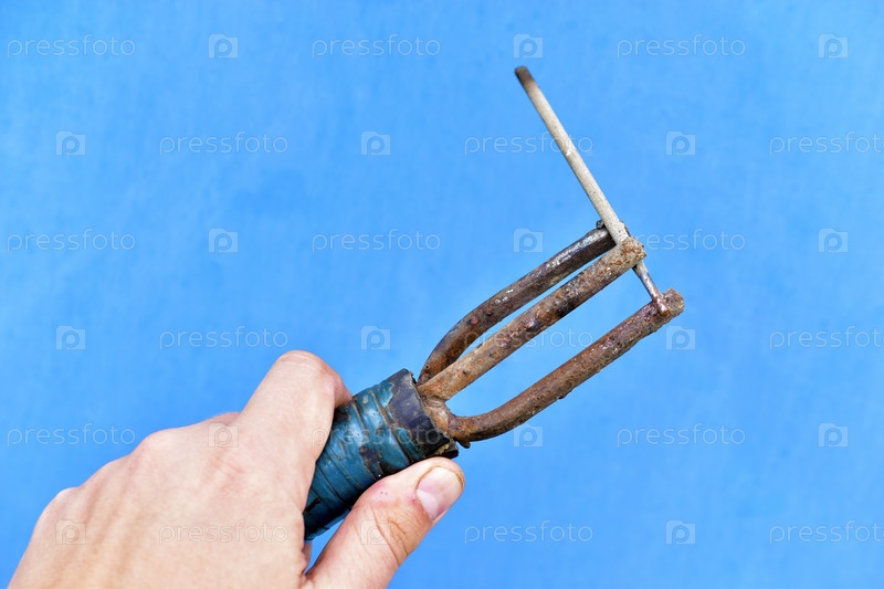 Держатель ручки сварочного аппарата в руке на синем фоне