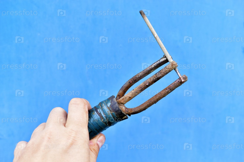 Держатель ручки сварочного аппарата в руке на синем фоне
