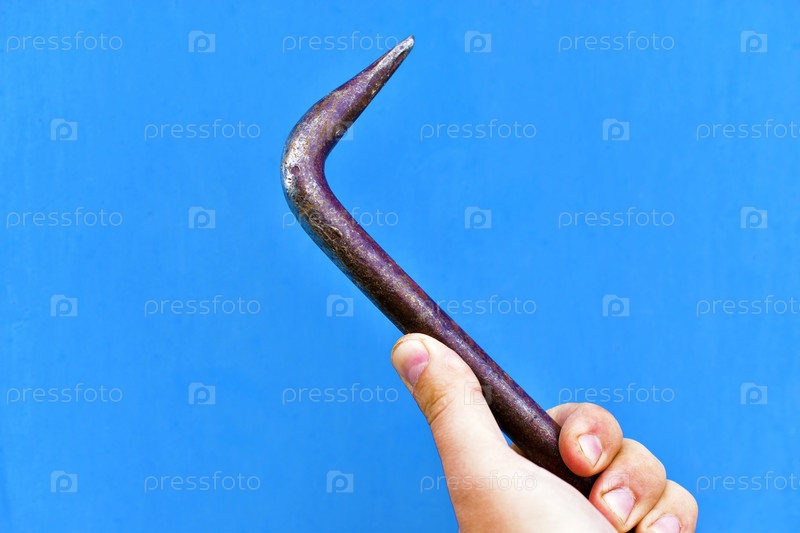 Железный молоток в руке на синем фоне