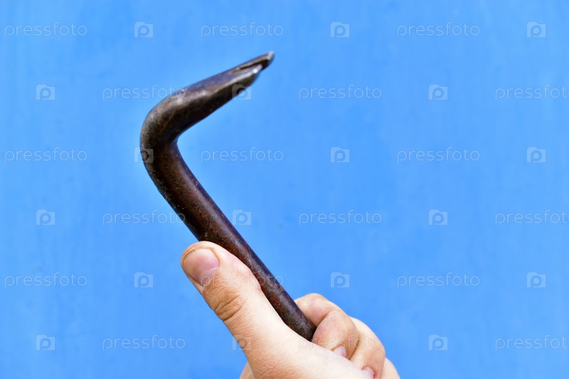 Железный молоток в руке на синем фоне