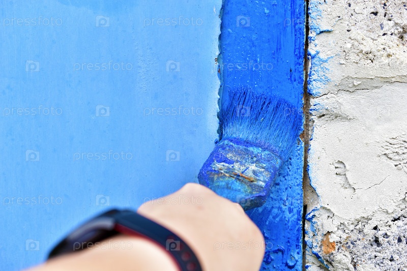 Покраска железных поверхностей синей кистью