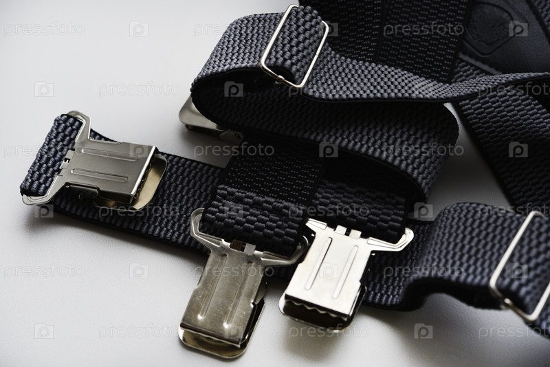 Подтяжки для брюк на белом фоне. Серые подтяжки с крокодилами
