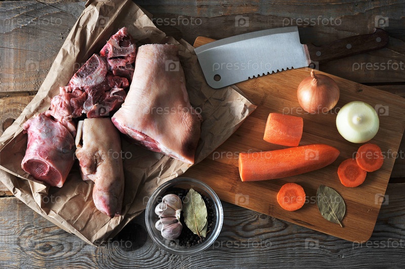Набор для приготовления холодца - свиные ножки, свиная рулька, морковь, лук, специи