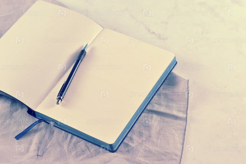 Открытая тетрадь на фоне белого мрамора