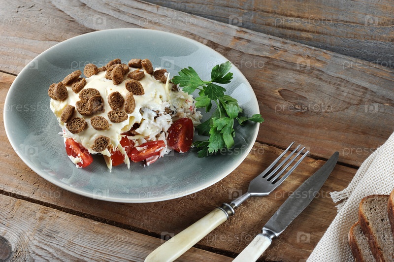 Салат с помидорами и крабовыми палочками и яйцом