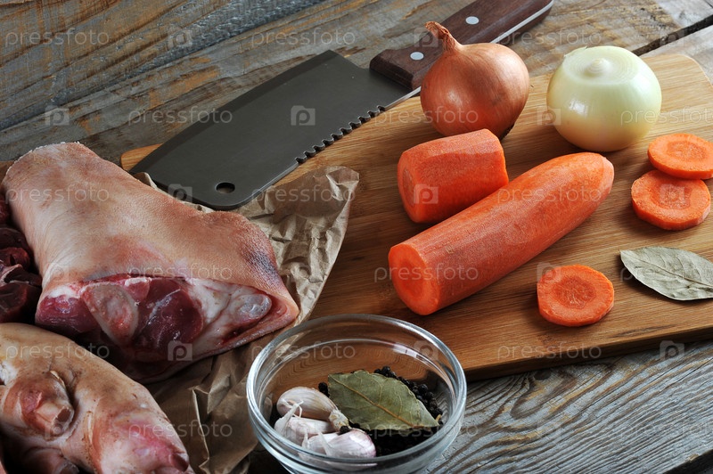 Набор для приготовления холодца - свиные ножки, свиная рулька, морковь, лук, специи