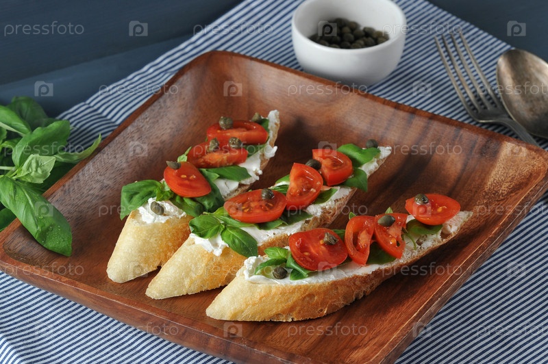 Багет с мягким сыром, базиликом, черри, каперсами