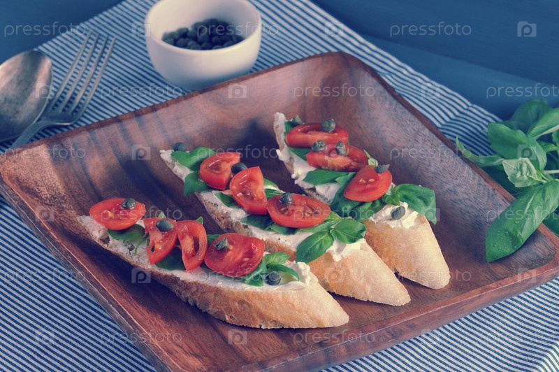 Багет с мягким сыром, базиликом, черри, каперсами