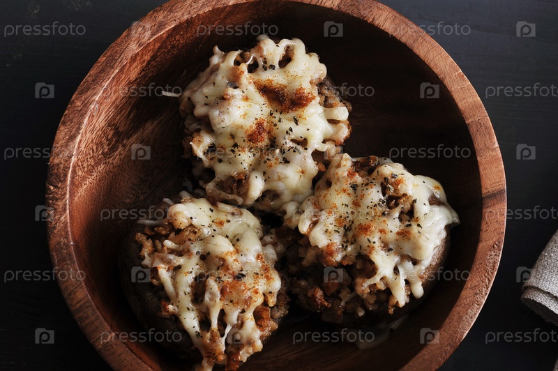 Шампиньоны фаршированные сыром и беконом