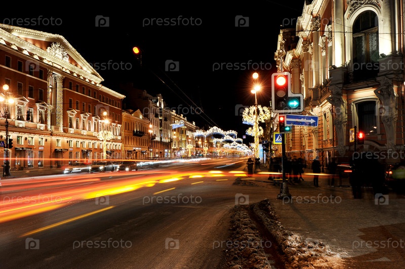 Новогоднее украшение Невского проспекта в Санкт-Петербурге - ночной вид