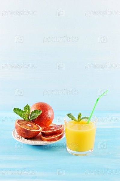 Апельсиновый сок в стакане с мятой и соломинкой