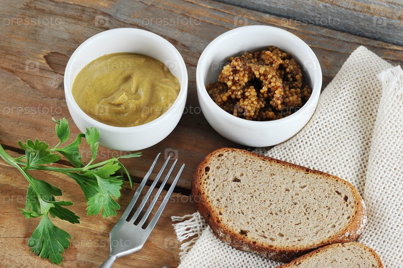Два вида горчицы - классическая горчица и дижонская горчица