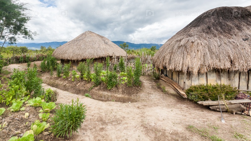 Традиционная деревня Дани в Папуа-Новой Гвинее, Вамена, Индонезия