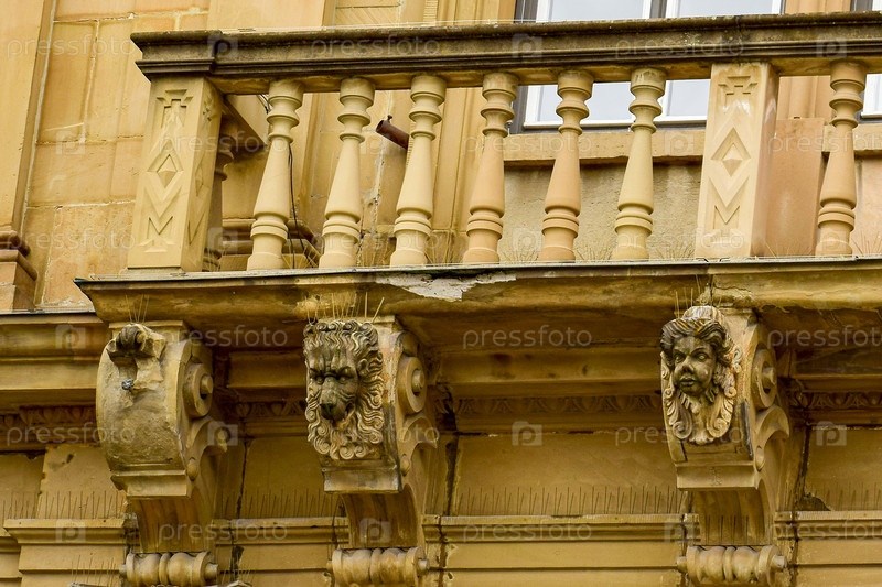 Фрагмент здания с балконом, украшенным фресками