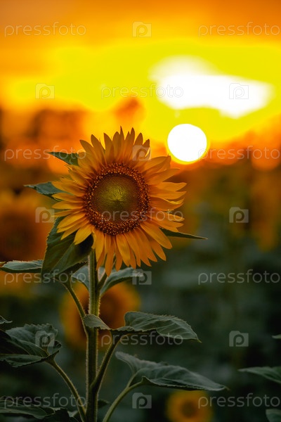 Одиночный подсолнух на фоне красивого заката