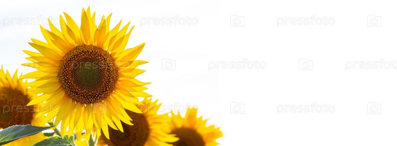 Изолировать цветок подсолнуха на белом фоне с пространством для текста