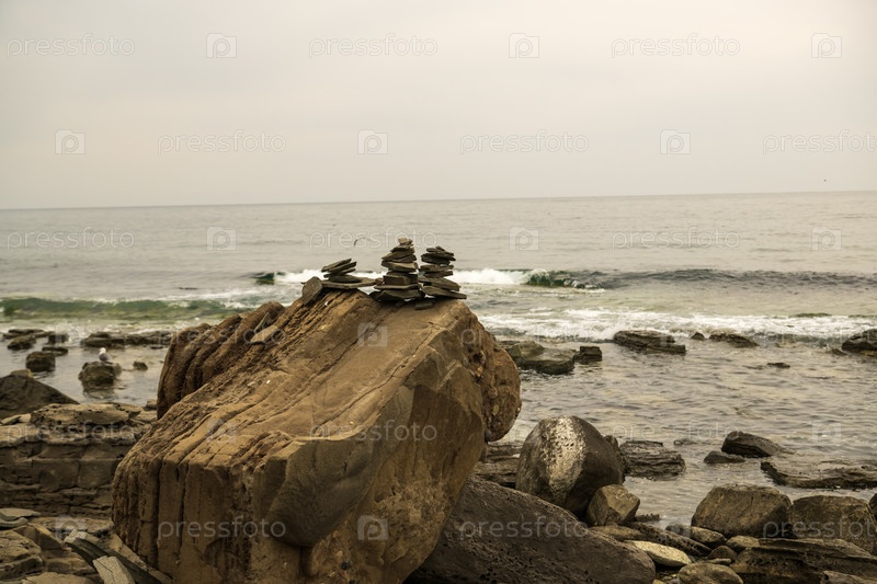 Скалистое побережье острова Русский в японском море