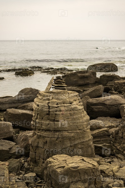 Сложенные в кучу камни на пляже. Концепция Дзен