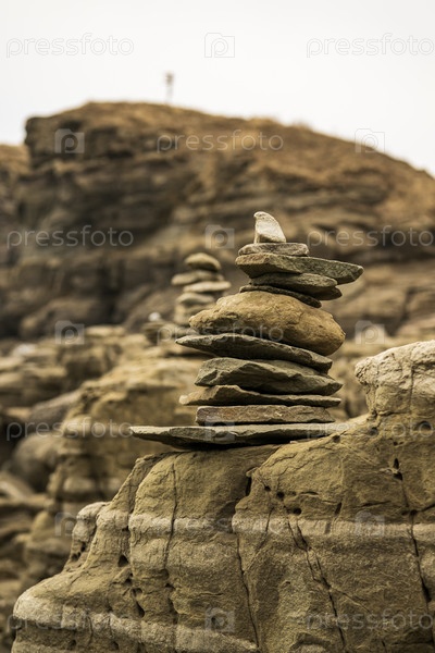 Сложенные в кучу камни на пляже. Концепция Дзен