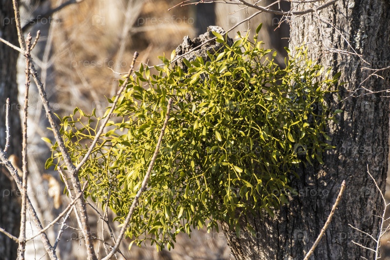Омела на дереве ранней весной в лесу