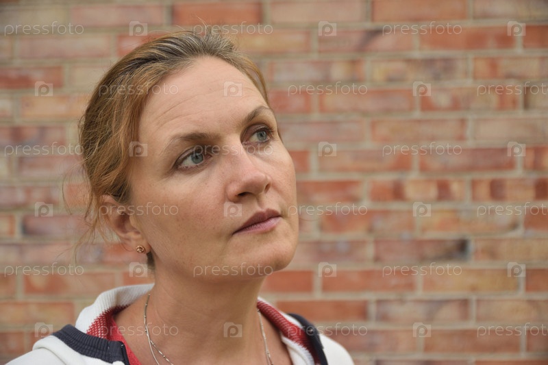 Привлекательная женщина средних лет задумчиво смотрит в сторону