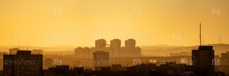 Рассветные облака над мегаполисом раннего заката в Екатеринбурге