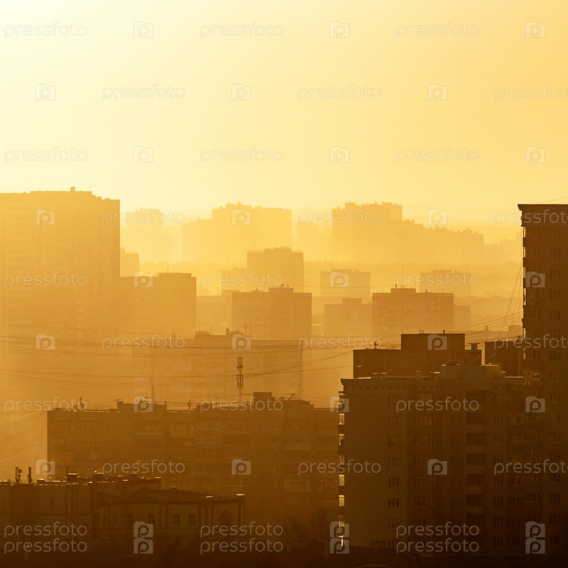 Рассветные облака над мегаполисом раннего заката в Екатеринбурге