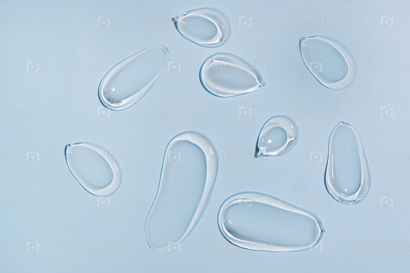 Капли алоэ вера жидкой гелевой сыворотки, текстурный микропузырь на синем фоне, концепция красоты