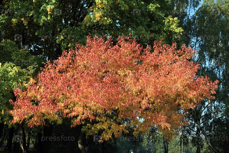 Красные и желтые листья осенью
