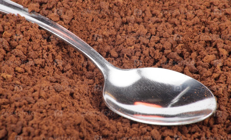 Много молотого кофе и чайная ложка