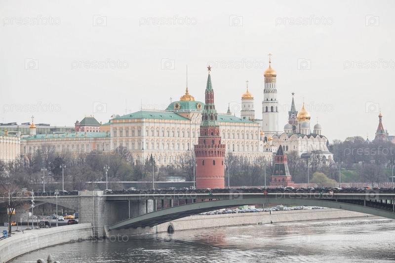 МОСКВА, Россия - 18 апреля 2023 г.: Вид на Москву в весенний день. столица России. Большой Кремлевский Дворец. Кремлевская набережная. Москва-река. Популярная туристическая достопримечательность