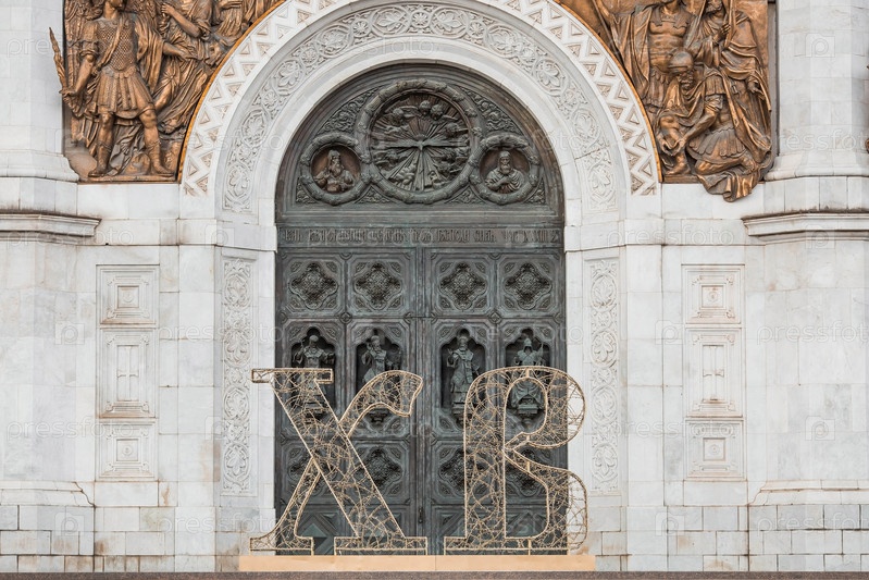 Пасхальная неделя в городе. Фестиваль "Пасхальный дар" Пасхальная инсталляция у Храма Христа Спасителя. Пасхальный декор на улицах города. Московские сезоны. Россия. Москва