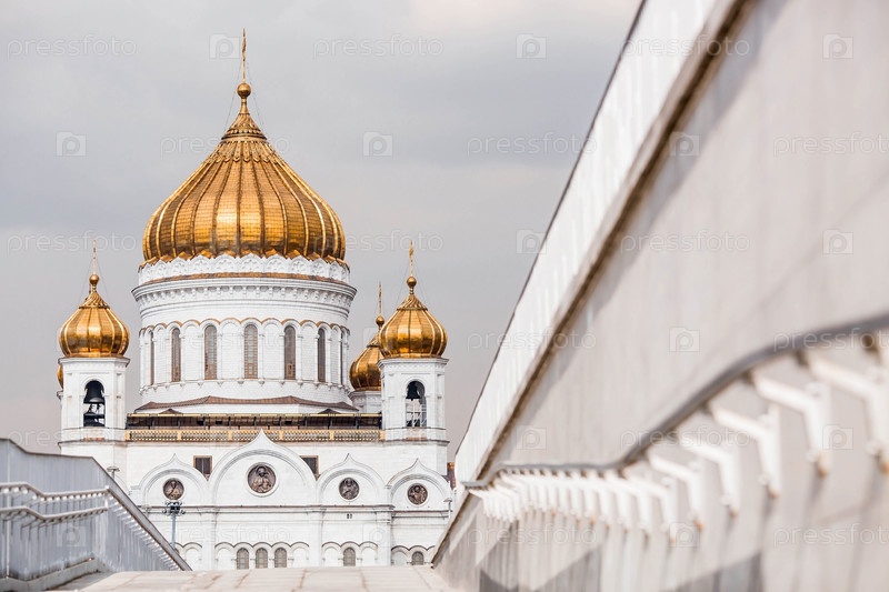 Русский православный собор — это собор Христа Спасителя в Москве в весенний день. Российская Федерация, Москва